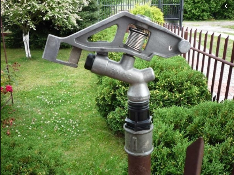 él riega la mitad del área. Accionamiento por turbina y fabricado con materiales inoxidables
